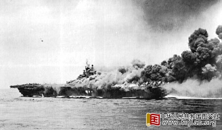 “邦克山”号浓烟滚滚 本文来自中华人民共和国图鉴社