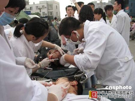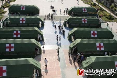 5月12日下午,四川汶川县发生7.8级地震,成都也受到波及。位于成都北郊的成都军区总医院接收了来自地震灾区的100多名伤员。在积极组织抢救的同时,医院搭建10余顶大型帐篷,将住院的1000多名患者全部安全转移。 copyright 中华人民共和国图鉴社