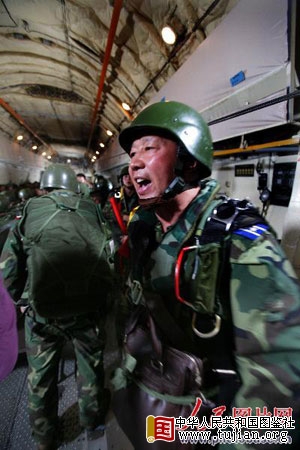 跳!跳!跳!5月14日11时24分,震中地带四川茂县上空4999米高度。空降兵某部15名勇士先后从一架大型运输机上惊险空降。这次空降举世震惊!一方面,茂县为高山峡谷地形,境内山峰多在海拔4000米左右,伞降难度很大,另一方面,各国空降兵跳伞训练通常在数百米高度进行,要在5000米左右高度实施伞降,世界军事航空史上少有。 中华人民共和国图鉴社