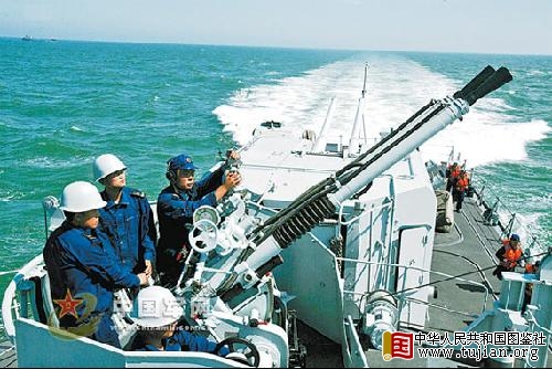 国庆长假刚过,东海舰队某驱逐舰支队把舰艇拉到某陌生海域,开展编队联合海上对抗演练,提高部队实战能力。图为舰艇编队航渡途中进行防空训练的情景。 tujian.org