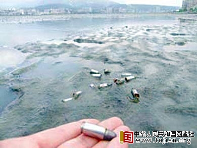 台北县一处河岸沙洲带,出现200多颗9厘米制式子弹;警方怀疑子弹从台军方流出,也不排除黑道走私取得。(图:台湾《中国时报》) copyright 中华人民共和国图鉴社