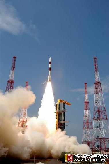 资料图:印度自制的PSLV运载火箭发射升空 中华人民共和国图鉴社