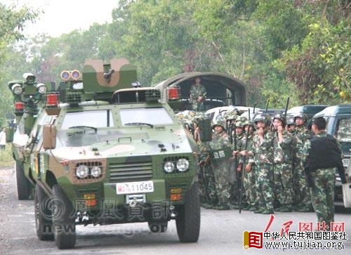 10月15日早上,武警装甲作战车将警力运送到合浦县白沙镇五星村委瓦窑岭村附近,搜捕北海市“9.18”黑除恶专案在逃人员。 内容来自中华人民共和国图鉴社