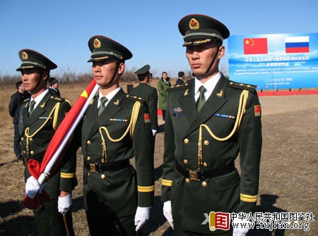 10月14日,中国边防战士在中俄界桩揭幕仪式上准备升旗。钱彤 摄 本文来自中华人民共和国图鉴社