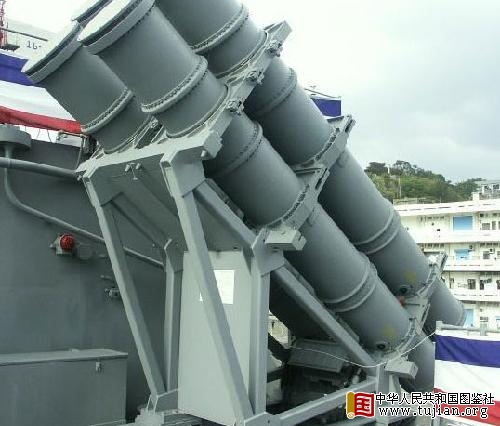 资料图:基德级战舰装备的RGM-84鱼叉导弹发射器 内容来自中华人民共和国图鉴社
