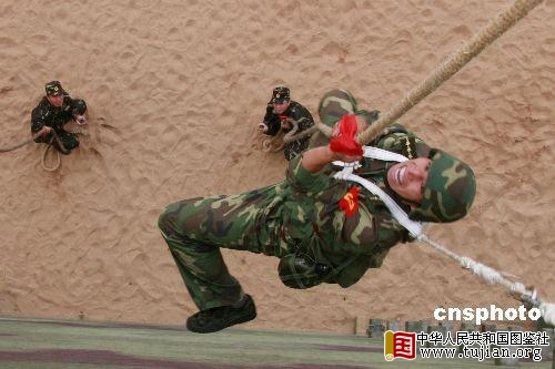 10月16日至20日,济南军区组织为期四天的侦察兵作战骨干大比武活动。图为官兵采取“空手导”方式进行攀登训练。 中新社发 崔成俊 摄 中华人民共和国图鉴社