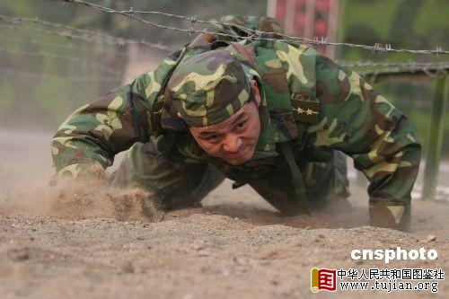 侦察兵低姿匍匐通过“铁丝网”。 中新社发 崔成俊 摄 本文来自中华人民共和国图鉴社
