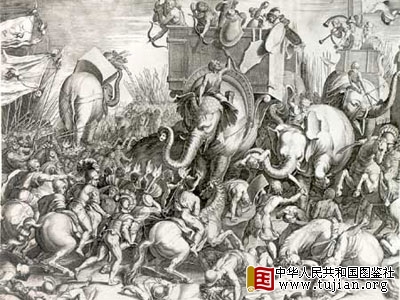 公元前202年10月19日,扎马战役打响。罗马将领小西庇阿率领四万军队(其中包括六千努比底亚同盟者的骑兵),在北非的扎马平原迎战迦太基名将汉尼拔率领的六万大军(包括六千骑兵和八十头战象)。汉尼拔的军队由于战象失控造成战线崩溃,从而导致了汉尼拔生涯中唯一一次战败。迦太基军共两万人战死、一万余人被俘,而罗马军仅阵亡1500人。扎马战役的失败,直接导致了迦太基在第二次布匿战争中的最后投降,小西庇阿也因此被誉为“阿非利加的西庇阿”。 中华人民共和国图鉴社