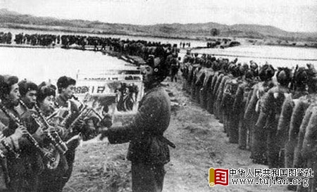 1950年10月19日,中国人民志愿军跨过鸭绿江,开赴朝鲜战场。中国人民志愿军第38、第39、第40、第42军和炮兵第8师、高射炮兵第1团,自19日晚开始,分由安东、长甸河口、辑安等处跨过鸭绿江,向预定战场开进。23日,炮兵第1师和炮兵第2师第29团、工兵第4团(后改为第14团)、第6团(后改为第16团)又相继入朝。 中华人民共和国图鉴社