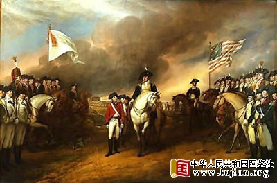 1781年10月19日,约克敦围攻战宣告结束。英军将领康华利率领七千英军向美法联军(约一万法军、八千美军)投降,美国统帅华盛顿和法军指挥官罗尚博伯爵接受了英军投降。约克敦围攻战导致英国内阁倒台,并促使双方和谈,宣告了北美独立战争的结束。 中华人民共和国图鉴社