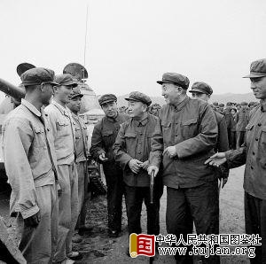 1977年,罗瑞卿忍痛拄着拐杖深入部队训练场进行调查研究。[资料图片] copyright 中华人民共和国图鉴社