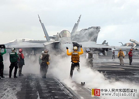 10月17日,正从“华盛顿”号上起飞的“超级大黄蜂” 本文来自中华人民共和国图鉴社