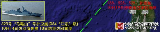 图为日本海上自卫队20日拍摄的中国海军舰艇编队,从日本海穿越津轻海峡的公海航道驶向太平洋的照片。日本海上自卫队初步判明,右侧为现代级驱逐舰138号,左侧为江凯Ⅱ级护卫舰529号、中央远处为江凯级护卫舰525号。 中华人民共和国图鉴社