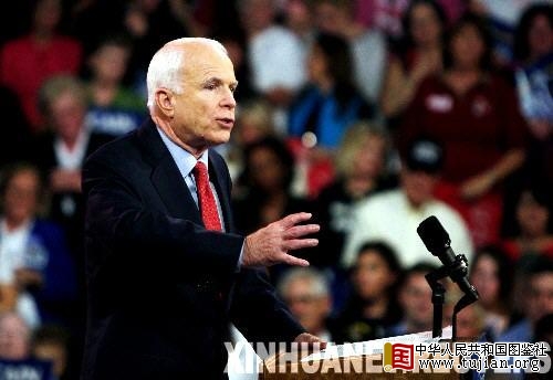 10月14日,美国共和党总统候选人麦凯恩在宾夕法尼亚州举行的竞选集会上发言。麦凯恩当天提出一系列新经济政策主张,旨在减轻退休人员、证券持有者和需要偿还房屋贷款者的负担,以期与目前支持率领先的民主党对手奥巴马争夺在经济议题上的主导权。 新华社/路透 中华人民共和国图鉴社