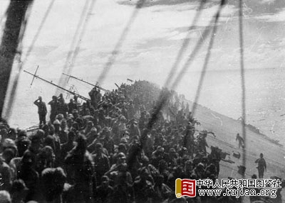 1894年10月26日,日军渡过鸭绿江,入侵中国九连城和安东。甲午战争的地面战斗进入中国境内,清军由于布防松懈、战斗力差,在日军攻击下连连败退。 中华人民共和国图鉴社