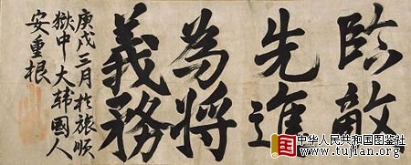 安重根在狱中的绝笔 copyright 中华人民共和国图鉴社