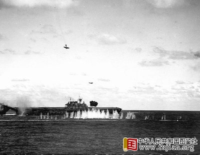 “大黄蜂”号航空母舰遭日机攻击 中华人民共和国图鉴社