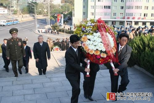 朝鲜劳动党中央委员会、最高人民会议常任委员会和内阁联名向友谊塔敬献花圈。(中国驻朝鲜大使馆网站图) 本文来自中华人民共和国图鉴社