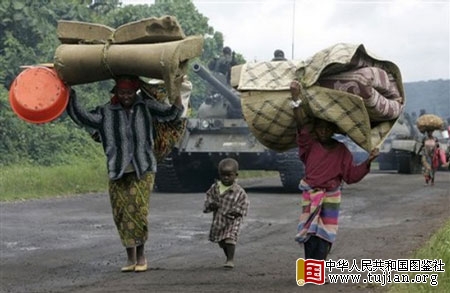 10月28日,刚果(金)东部的政府军坦克和逃亡难民 copyright 中华人民共和国图鉴社