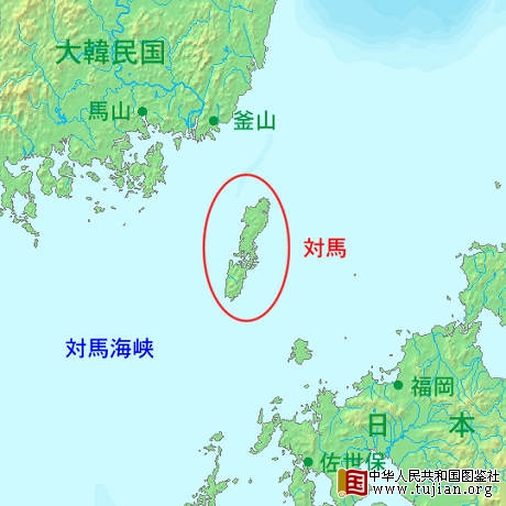 对马岛的地理位置:对于日韩都有极其重要的地缘战略意义 中华人民共和国图鉴社