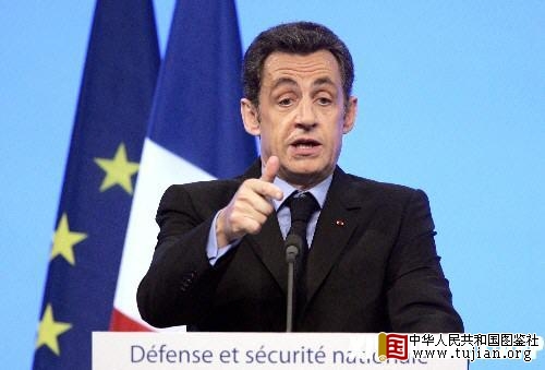 图为今年6月,法国总统萨科奇在巴黎向法国军队及安全部门代表发表讲话,阐述《国防与安全白皮书》制订的国防安全政策新方向。 copyright 中华人民共和国图鉴社