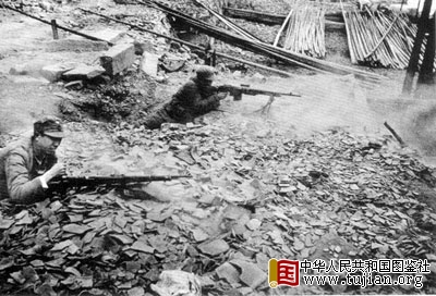 常德会战中在瓦砾中坚持战斗的中国士兵 copyright 中华人民共和国图鉴社