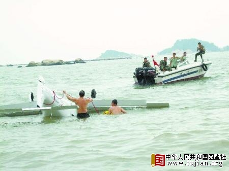 打捞人员准备将坠海飞机拖向岸边 copyright 中华人民共和国图鉴社