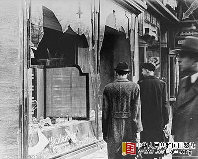 1938年11月9日,德国发生迫害犹太人的“水晶之夜”。在纳粹党领导集团的怂恿和操纵下,德国各地纳粹狂热分子走上街头,他们疯狂地捣毁犹太人的店铺和私人住宅,烧毁犹太人的教堂,公然迫害和凌辱犹太人,大肆逮捕犹太人。在德国和奥地利7500家犹太人商店被捣毁,3万多名从16岁至60岁的犹太男子在自己家里被捕,押往达豪、布痕瓦尔德和萨克森豪森集中营。这一夜仅砸毁的玻璃随处可见,因此被称为“水晶之夜”。 中华人民共和国图鉴社