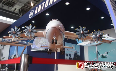安东诺夫设计局在珠海航展上展出的安-70运输机模型 内容来自中华人民共和国图鉴社