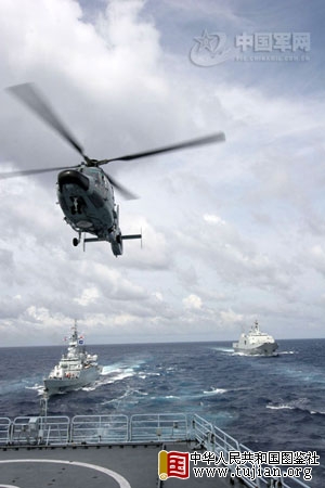 海上战舰驰骋,空中战鹰盘旋。11月上旬,南海舰队组织支援舰、登陆舰、驱逐舰、护卫舰、舰载直升机,首次在南沙附近海域开展了一次综合作战支援演练。他们在成功组织“两横一纵”海上补给训练的同时,演练了舰载直升机起降、悬停、侦察、模拟救援等课目,使舰机协同能力有了新的提高。(中国军网发 饶燕文摄)