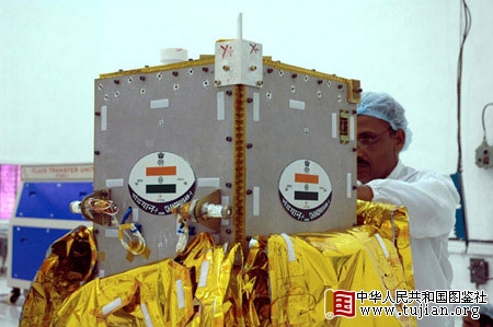 印度在月球探测器的每一侧面上都绘制了国旗。 copyright 中华人民共和国图鉴社