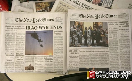 “伊拉克战争结束了!”11月12日人们得到的一份《纽约时报》,其头版消息让很多美国人激动,而且这份带来好消息的报刊,还一改往日的发行方式,被免费派送给了纽约和洛杉矶的市民。不过,在兴奋过后,越来越多的人觉得这份《纽约时报》有些奇怪,因为新闻里还报道说美国总统布什受到叛国罪的指控。总统先生不是好端端的吗?“2009年7月4日”,当人们看到报刊出版日期后,才明白原来这只是一次恶搞。 中华人民共和国图鉴社