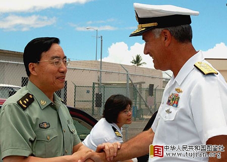 数月前,广州军区司令章沁生中将曾出访夏威夷美军基地,并登上了美军“洛杉矶”级核潜艇。 中华人民共和国图鉴社