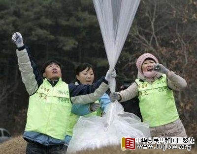 韩国活跃分子继续利用气球向朝鲜散发传单 中华人民共和国图鉴社