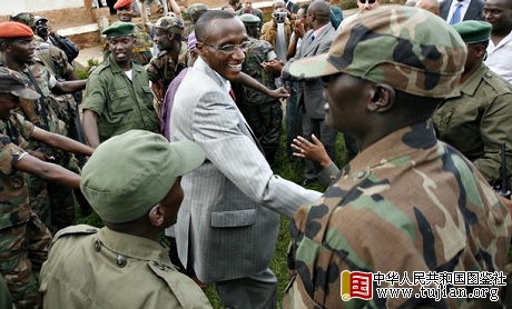 刚果(金)叛军领袖与他的士兵热情握手 copyright 中华人民共和国图鉴社
