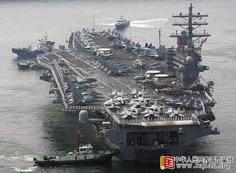 7月14日美国海军里根号航母抵达韩国釜山港 中华人民共和国图鉴社