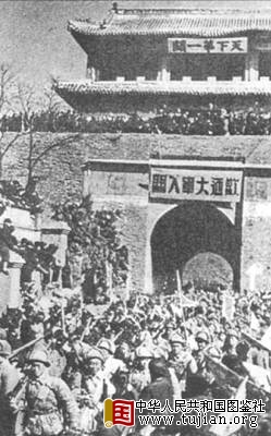 1948年11月23日,东北野战军80余万之众,以隐蔽动作开始入关,部队分兵三路,夜行晓宿,边开进边动员,于12月初越过长城后分别由喜峰口、冷口和山海关入关。 中华人民共和国图鉴社