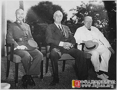 中美英三国首脑在开罗 copyright 中华人民共和国图鉴社