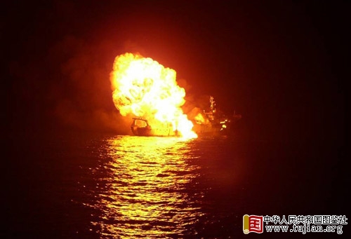 11月24日,印度海军公布了“塔巴尔”号军舰在亚丁湾击沉的一艘索马里海盗船的照片。
