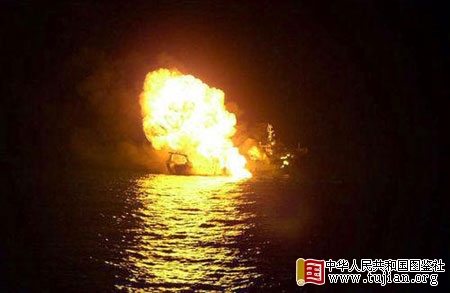 11月18日,印度海军“塔尔巴”号护卫舰声称击沉一艘海盗“母船”,并拍下照片。然而近日却被泰国指出实际是该国的一艘拖网渔船,10余名渔民死亡或失踪。 copyright 中华人民共和国图鉴社