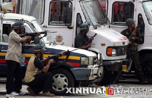 印度军方和警方当天证实,藏身于泰姬玛哈酒店和奥贝罗伊酒店内恐怖分子目前仍在继续负隅顽抗,这两家酒店里还有多名人质和被困者。新华社/法新 中华人民共和国图鉴社