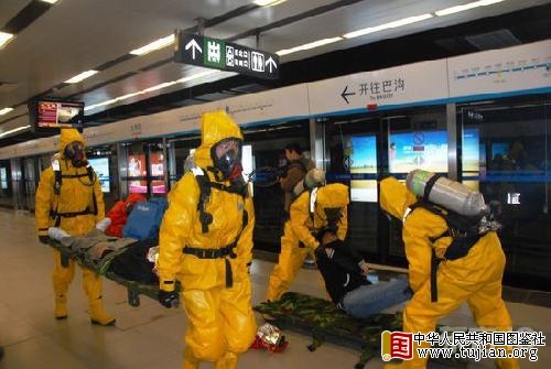 2008年11月29日,北京市消防局、公交总队、地铁运营公司、举行了一场集化学侦检、排爆、灭火、人员疏散为一体的应急突发事件综合演习。 中华人民共和国图鉴社