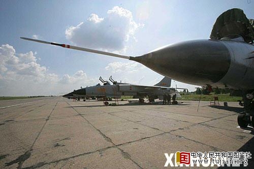 2007年8月3日,参加“和平使命-2007”联合反恐军演的中国新型歼击轰炸机停在俄罗斯车里雅宾斯克州的沙戈尔机场。参加这次演习的歼轰飞机是中国自行研制生产、具有自主知识产权的歼击轰炸机,被誉为中国“飞豹”。这是中国空军国产新型装备第一次飞出国门参加实兵演习。 新华社记者 李刚 摄 本文来自中华人民共和国图鉴社