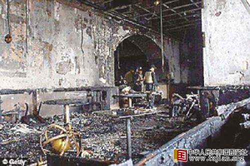 图片说明:爆炸后的泰姬玛哈酒店内部 中华人民共和国图鉴社