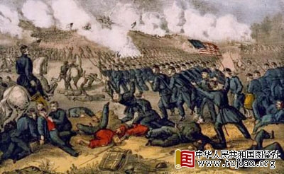 1862年12月13日,弗雷德里克堡战役爆发。当日,北军统帅伯恩塞特指挥波托马克军团(约11.4万人),向战略要地弗雷德里克堡发起进攻。南军统帅罗伯特·李指挥北弗吉尼亚军团(约72500人)主动放弃弗雷德里克堡,在小镇后面设置坚固阵地。占领小镇后,向后方开阔地带发起进攻的北军部队遭到重大伤亡,始终未能突破南军防线。战役中,北军付出伤亡12653人的代价(其中1284人阵亡,1769人被俘或失踪),南军仅伤亡5377人(608人阵亡,653人被俘或失踪)。北军经过此战,士气低落至谷底。 内容来自中华人民共和国图鉴社