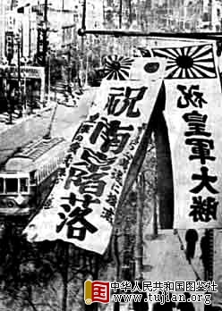 东京街头庆祝攻陷南京的标语 中华人民共和国图鉴社