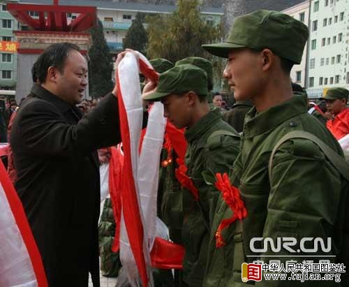 上午10:30,迎宾馆广场上响起阵阵欢送的锣鼓声,新兵们饮下一杯壮行酒,父老相亲都夹道相送,与新兵们一一道别。经历了“5-12”特大地震的汶川县新兵们表示,他们有信心适应部队生活,为家乡争光,为人民服务,用实际行动回报“5-12”地震以来全社会对汶川的关心、关注和支持。 tujian.org