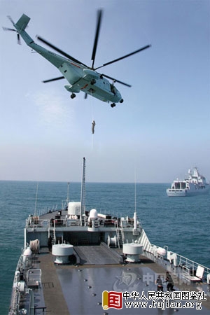 12月10日,南海舰队航空兵某直升机团与舰艇、特种部队在海上进行联合反恐演练。 中华人民共和国图鉴社
