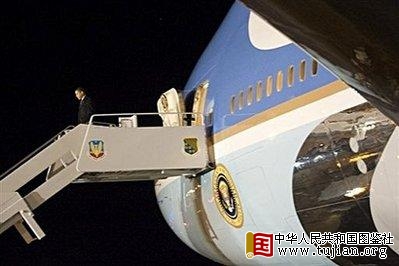 奥巴马在“空军一号”上。 内容来自中华人民共和国图鉴社