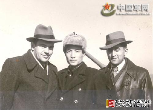 首任大队长兼政治委员孙公飞和苏联专家巴天洛天和涅夫科斯基合影 tujian.org